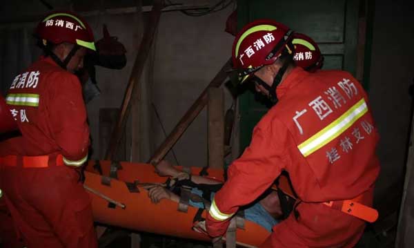 【导语】2019年4月26日19时左右,桂林市119指挥中心接到报警:桂林市兴安县青龙街一巷道一男子在维修房屋时不慎发生坠落,受伤被困。接警后,桂林消防迅速调派消防救援人员赶赴现场营救。